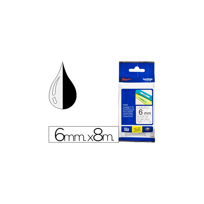 CINTA BROTHER TZE111 TRANSPARENTE-NEGRO 6MM LONGITUD 8 MT