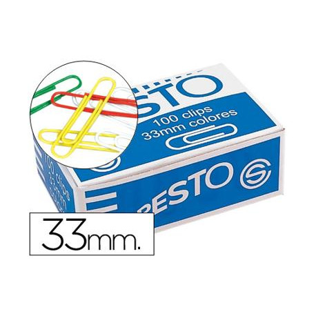 CLIPS COLORES PRESTO CAJA DE 100 UNIDADES COLORES SURTIDOS