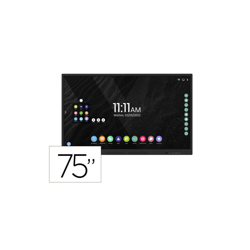 Monitor interactivo dise±ado para mejorar las necesidades de comunicaci¾n en el sector educativo y sector privado de empresas. Equipado con sistema operativo Android 14 Resoluci¾n 4K UHD. Acceso a internet y WIFI integrado . Sistema mirroring para visualizar e interactuar con varios dispositivos simultßneamente. Altavoces incorporados fabricados con materiales de mßxim a calidad. Carcasa realizada en acero para una mßxima protecci¾n exterior. Cristal templado de 4 mm con un mÝnimo Ýndice de fricci¾n para una ßgil u tilizaci¾n y mßxima protecci¾n ante posibles golpes, permitiendo una limpi eza segura con cualquier producto de limpieza. Pantalla multitßctil. Graba ci¾n de vÝdeo y audio. Lector de archivos Office y PDF. Editor de archivos