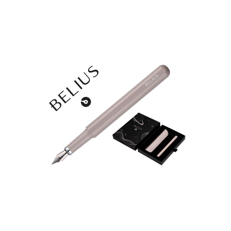 PLUMA Y FUNDA DE SIMILPIEL BELIUS SPACE B COLOR MINIMALISTA GRIS TINTA AZUL CAJA DE DISEÑO