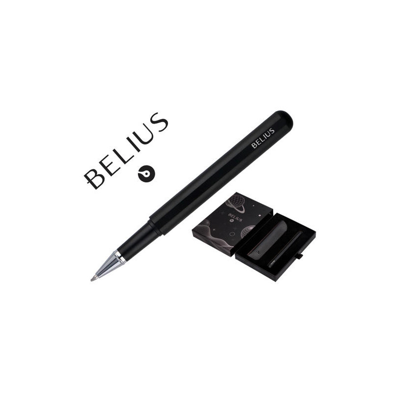 ROLLER Y FUNDA DE SIMILPIEL BELIUS SPACE B COLOR MINIMALISTA NEGRO TINTA AZUL CAJA DE DISEÑO