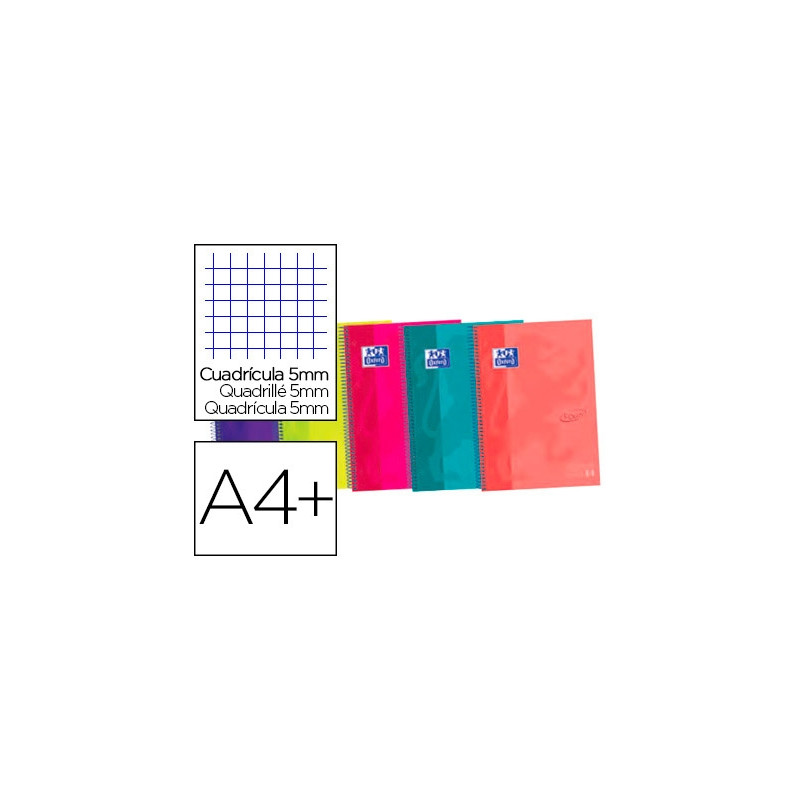 CUADERNO ESPIRAL OXFORD EBOOK 5 TAPA EXTRADURA DIN A4+ 120 H MICROPERFORADAS CUADRO 5 MM COLORES VIV