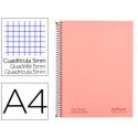 Cuaderno A4 microperforado de gran calidad, cuadro de 5mm con 5 bandas de color, 120 hojas de papel 80g/m2 con excelentes caracterÝsticas, gran suav idad y blancura, ademßs hace la escritura muy fluida. Tapa de cart¾n entre colado de 1,5 mm de espesor. Tapa forrada a una cara con papel estucado ma te extrasuave. Guarda interior impresa. Gran resistencia y rigidez. La ti nta no traspasa. Espiral nylonizada de color. Coil-lock.