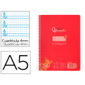 CUADERNO ESPIRAL LIDERPAPEL A5 PAUTAGUIA TAPA PLASTICO 80H 90GR CUADRO PAUTADO 4MM CON MARGEN COLOR