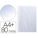 Funda para la protecci¾n y archivo de documentos. Fabricada en polipropile no cristal liso. 16 taladros. Grosor: 80 micras. Formato DIN A4+. La bolsa de 10 unidades.