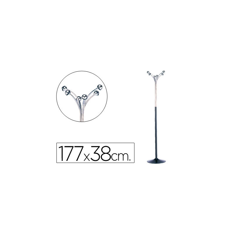 PERCHERO METALICO PIE 6 COLGADORES COLOR NEGRO/CROMADO 177X38 CM