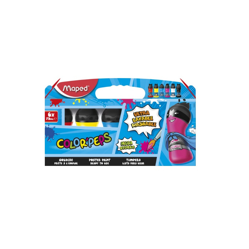 TEMPERA MAPED COLOR PEPS ULTRA LAVABLE CAJA DE 6 COLORES SURTIDOS PRIMARIOS 75 ML
